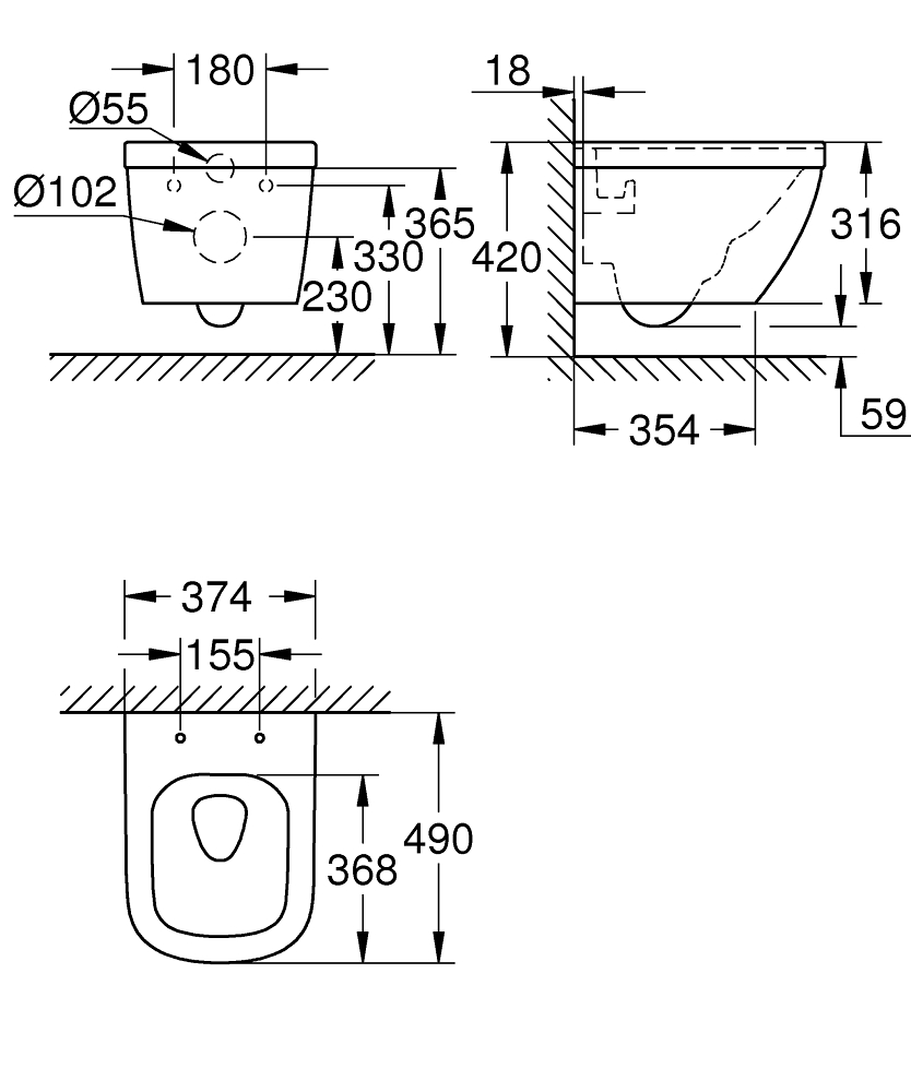 Унитаз подвесной БЕЗОБОДКОВЫЙ Grohe Euro Ceramic (49 см) альпин белый 39206000 крышка на выбор