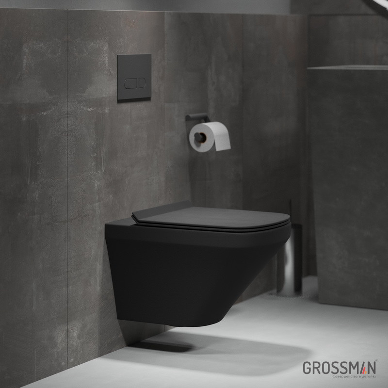 Унитаз подвесной БЕЗОБОДКОВЫЙ Grossman черный матовый GR-4440BMS