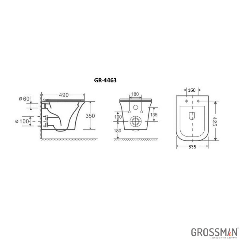 Унитаз подвесной БЕЗОБОДКОВЫЙ Grossman Classic GR-4463S