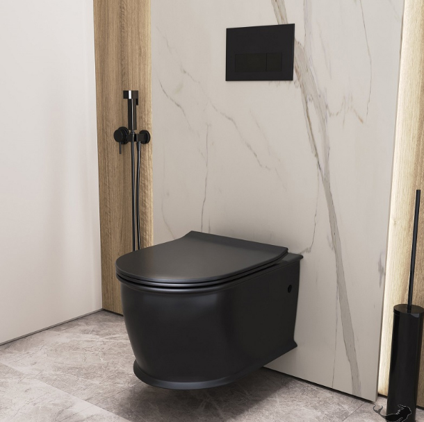 Унитаз подвесной БЕЗОБОДКОВЫЙ Grossman Retro черный матовый GR-4482BMS