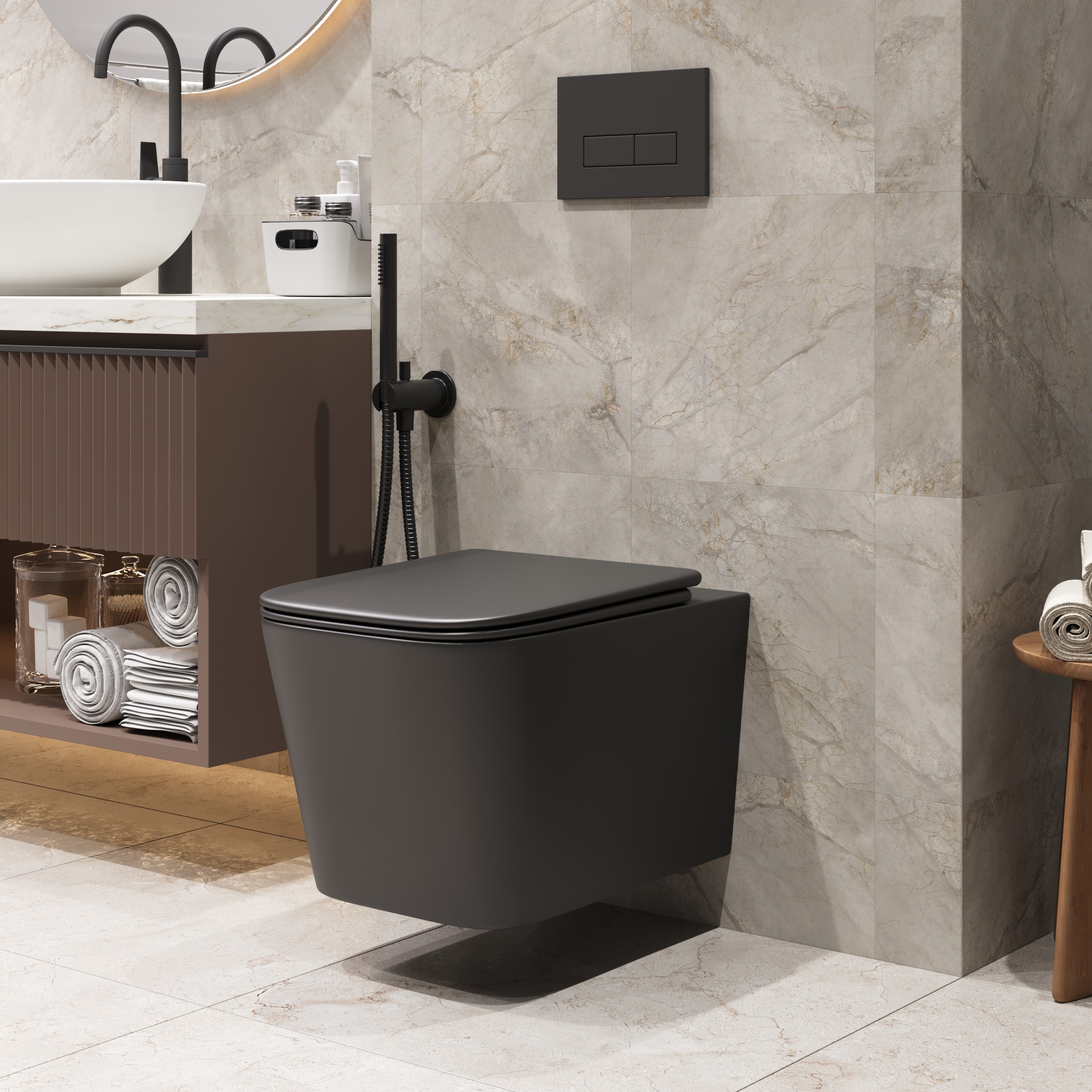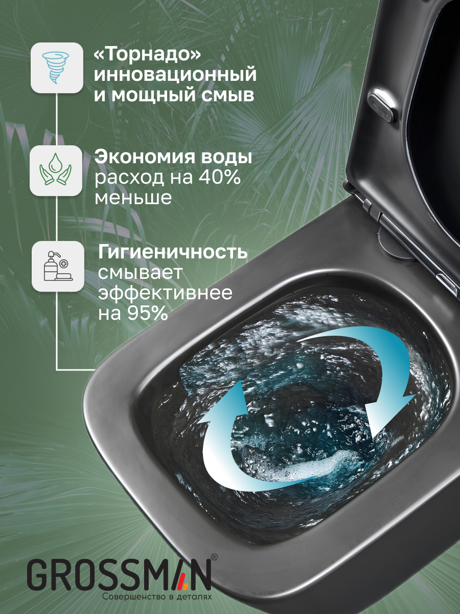 Унитаз подвесной БЕЗОБОДКОВЫЙ Grossman (смыв Торнадо) черный матовый GR-4404BMSQ