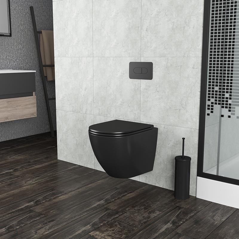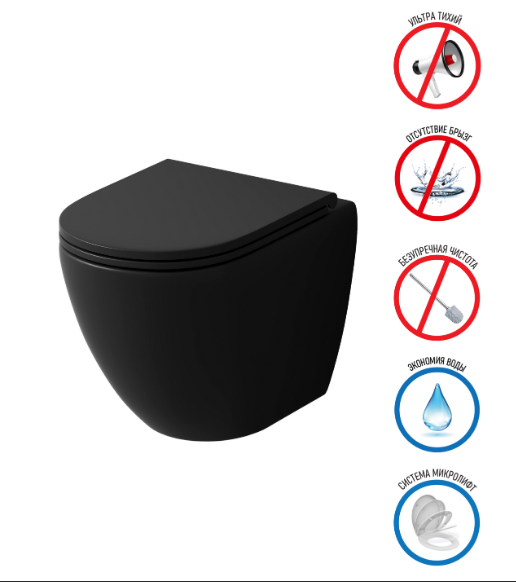 Унитаз подвесной БЕЗОБОДКОВЫЙ Grossman (смыв Торнадо) черный матовый GR-4455BMSQ
