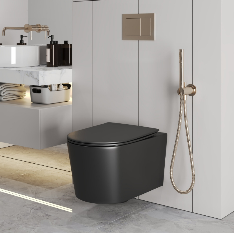 Унитаз подвесной БЕЗОБОДКОВЫЙ Grossman (смыв Торнадо) черный матовый GR-4499BMSQ