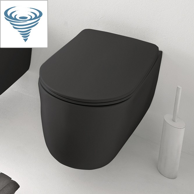 Унитаз подвесной БЕЗОБОДКОВЫЙ Kerasan Nolita (смыв Tornado) черный матовый 531531