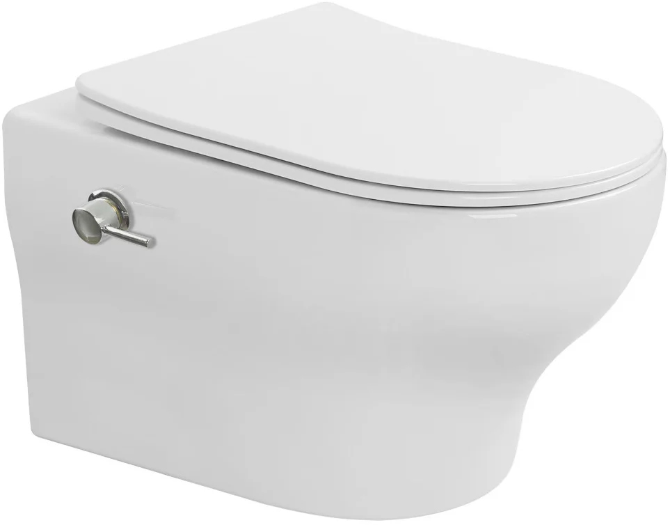 Унитаз подвесной БЕЗОБОДКОВЫЙ с функцией биде Boheme Fiore смыв Торнадо с крышкой белый глянец 978-SET-2-W