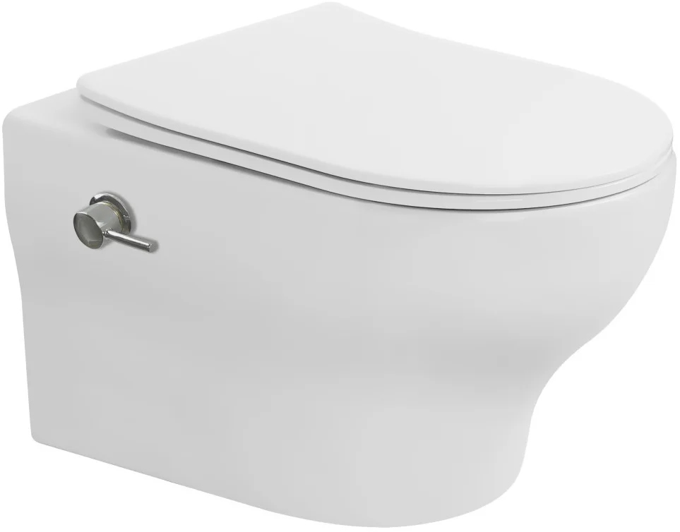 Унитаз подвесной БЕЗОБОДКОВЫЙ с функцией биде Boheme Fiore смыв Торнадо с крышкой белый матовый 978-SET-2-MW