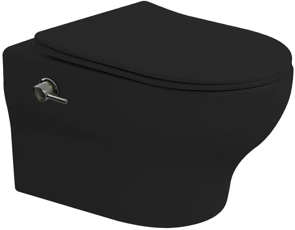 Унитаз подвесной БЕЗОБОДКОВЫЙ с функцией биде Boheme Fiore смыв Торнадо с крышкой черный матовый 978-SET-2-B