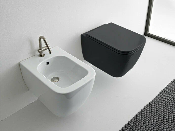 Унитаз подвесной БЕЗОБОДКОВЫЙ Scarabeo Teorema 2.0 черный матовый/ глянцевый 5126TW/B49