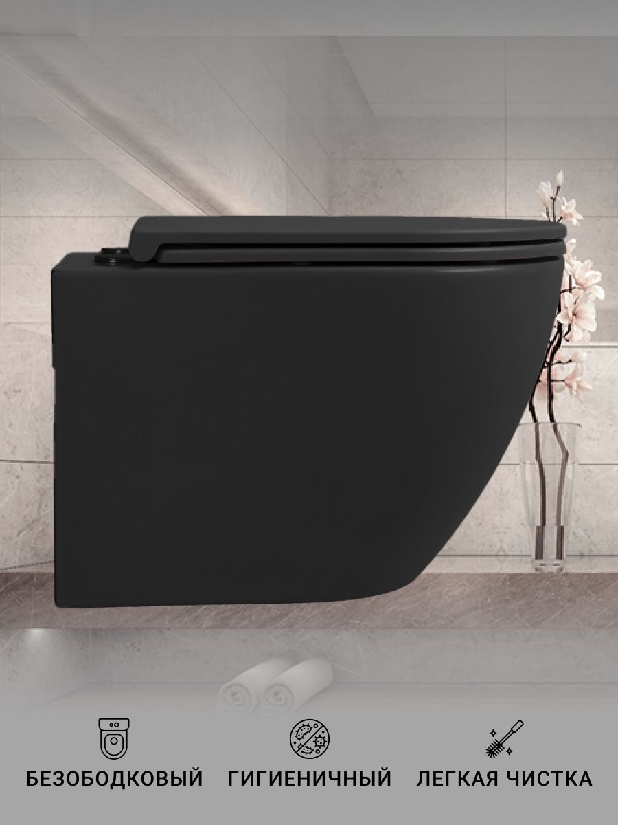 Унитаз подвесной БЕЗОБОДКОВЫЙ SinteSi Evi черный матовый SIN-TS-EVI-151BM