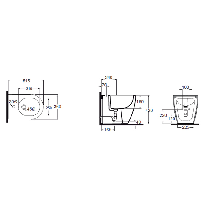 - биде напольное 51,5х36 см с 1 отверстием под смеситель (арт.CMBIT000000MBI*1)