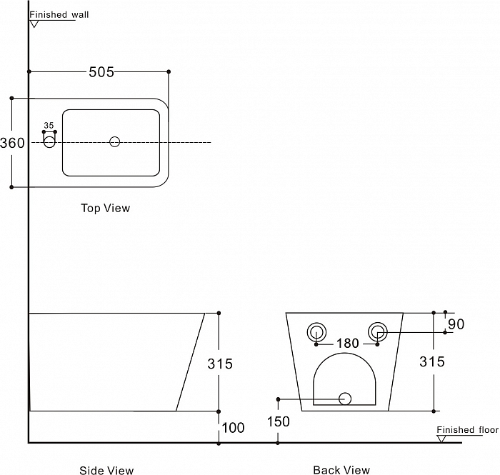 - Биде подвесное Aquanet Tavr2, 1 отв под смеситель LX-1067