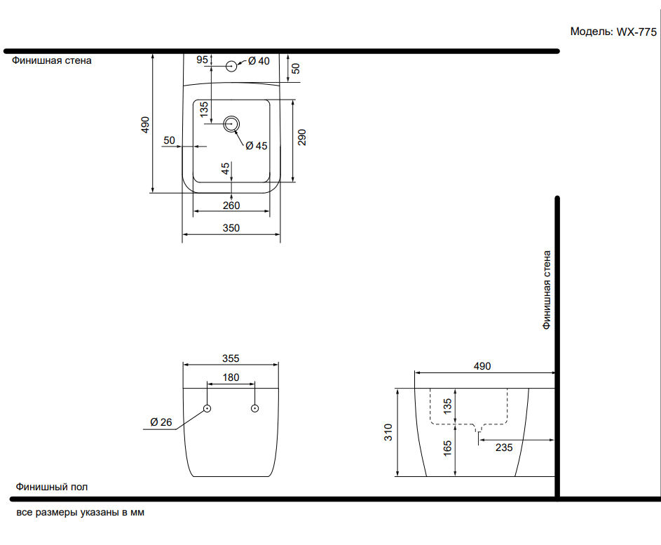| Особенности | 1 отверстие под смеситель/ перелив |