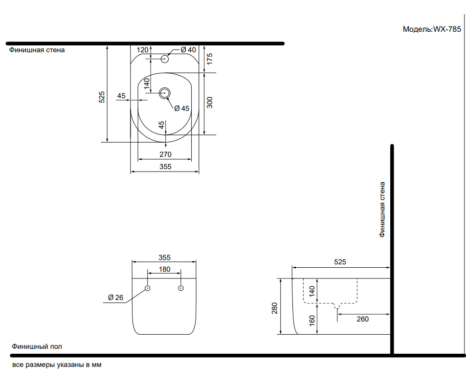 | Особенности | 1 отверстие под смеситель/ перелив |