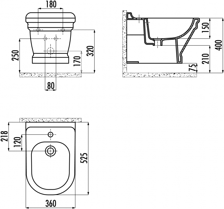 Биде подвесное Creavit Antik AN510-00CB00E-0000