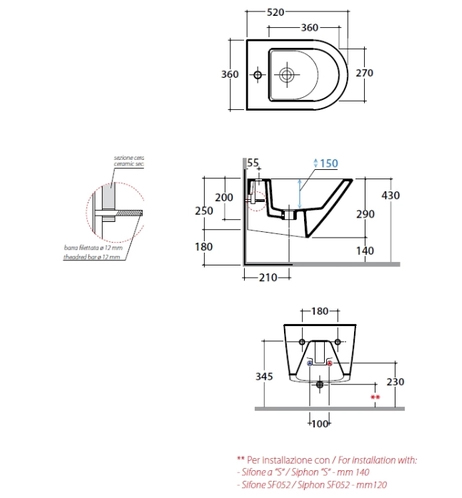 Биде подвесное Globo Forty3 52 см FOS10BI