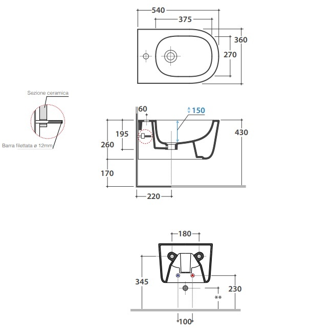 Биде подвесное Globo Lalita LTS09BI