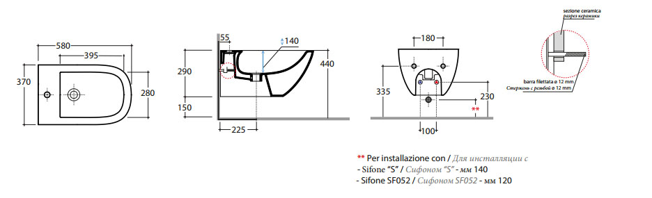 Биде подвесное Globo Stockholm 58 см LAS09.BI*1