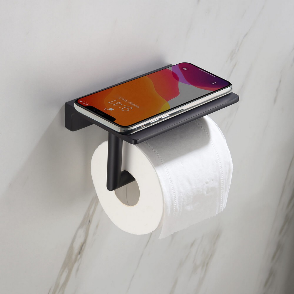 Бумагодержатель с полкой для телефона Timo Saona черный 13043/03