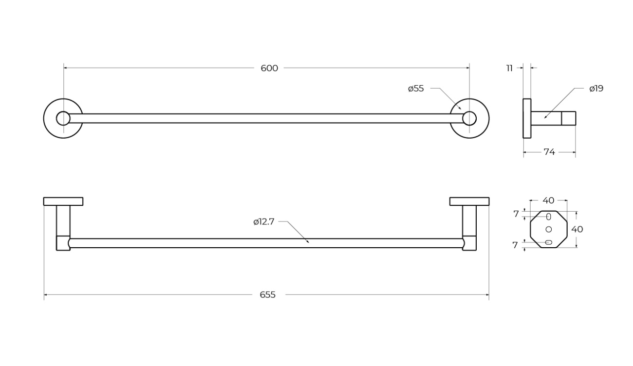 - Полотенцедержатель Cezares Relax 65,5 см оружейная сталь RELAX-TH-65-GM