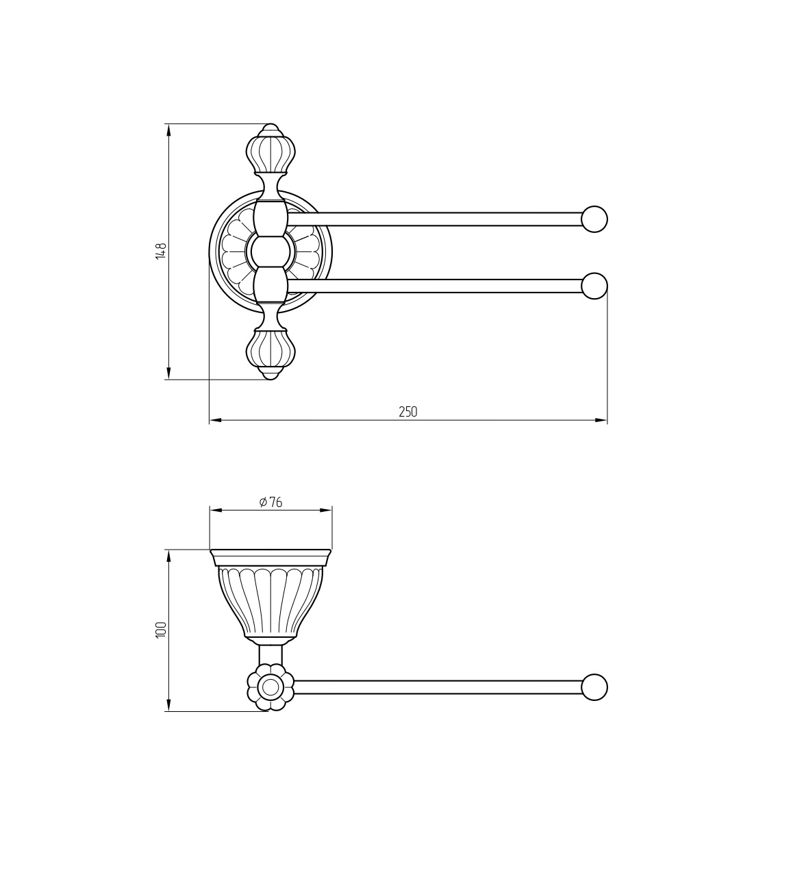 Полотенцедержатель двойной поворотный Migliore Olivia (25 см) 17528 золото