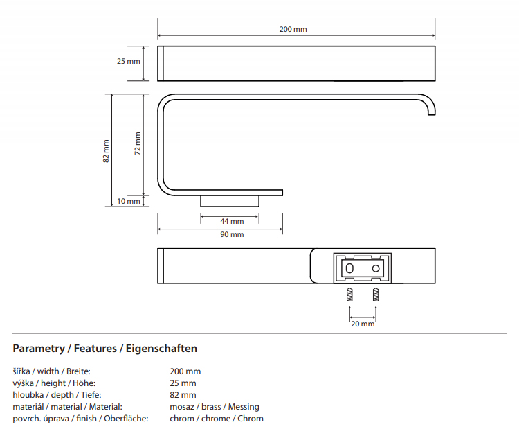 Размеры 200 x 25 x 82 мм