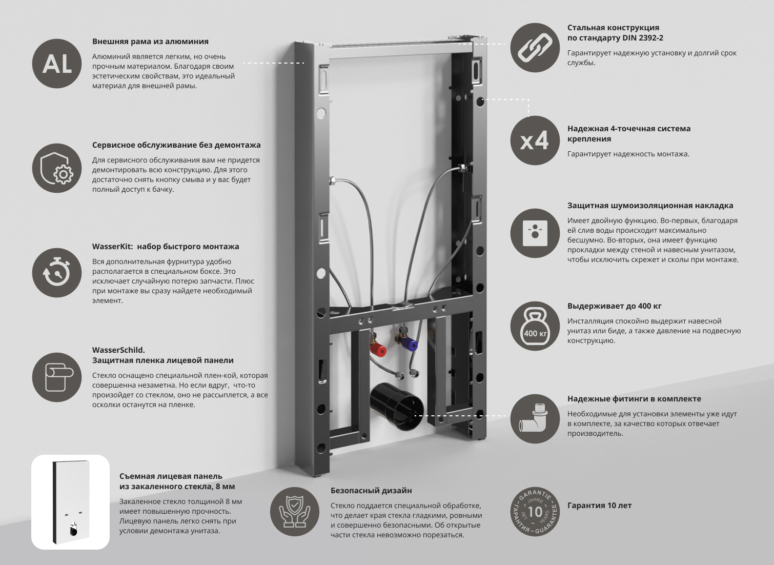 Пристенный модуль инсталляции для биде WasserKRAFT Naab 86BDT.050.WH