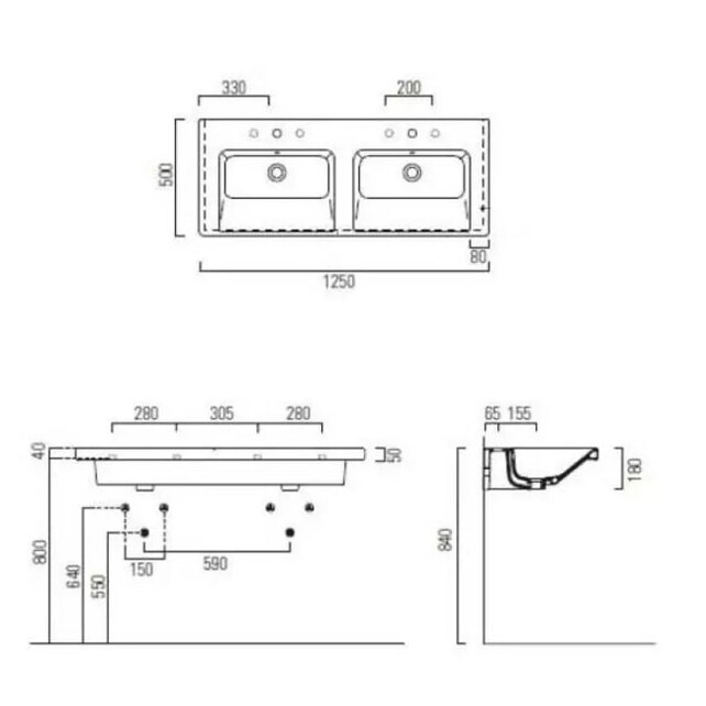 Двойная раковина Caprigo Гармония 125х50 см ГАРМОНИЯ-125