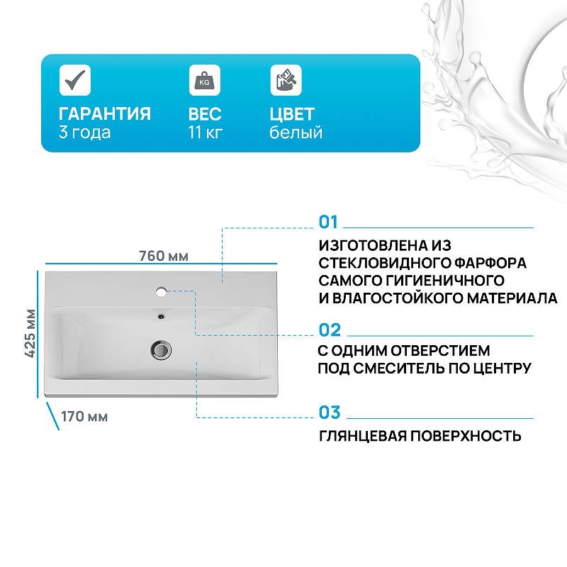 Мебельная раковина фарфор AM.PM Gem 75 см белый M90WCC0752WG
