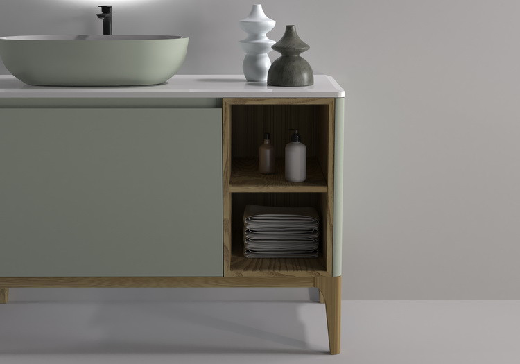 Детали фасадов мебели для ванных комнат производства компании Asrta-Form изготовлены из MDF. Отделка корпусных и фасадных деталей производится лакокрасочными материалами итальянского производства и натуральным шпоном. Поверхность мебели может быть глянцевой или матовой. Раковина изготовлена из литого мрамора. Столешница по Вашему выбору может быть изготовлена из литого или натурального мрамора. Все столешницы в стандартном исполнении имеют вырезы под смеситель в штатных местах, утвержденных производителем. При заказе столешницы из литого мрамора все раковины в стандартном исполнении смонтированы (встроены) на столешницу в штатных местах, утвержденных производителем. При заказе столешницы из натурального мрамора все раковины поставляются без монтажа на столешницу, при этом столешница из натурального мрамора имеет вырез под монтаж раковины в штатных местах, утвержденных производителем.
