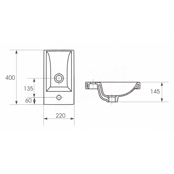 Раковина мебельная. С отверстием для смесителя, с переливом, монтажным комплектом.