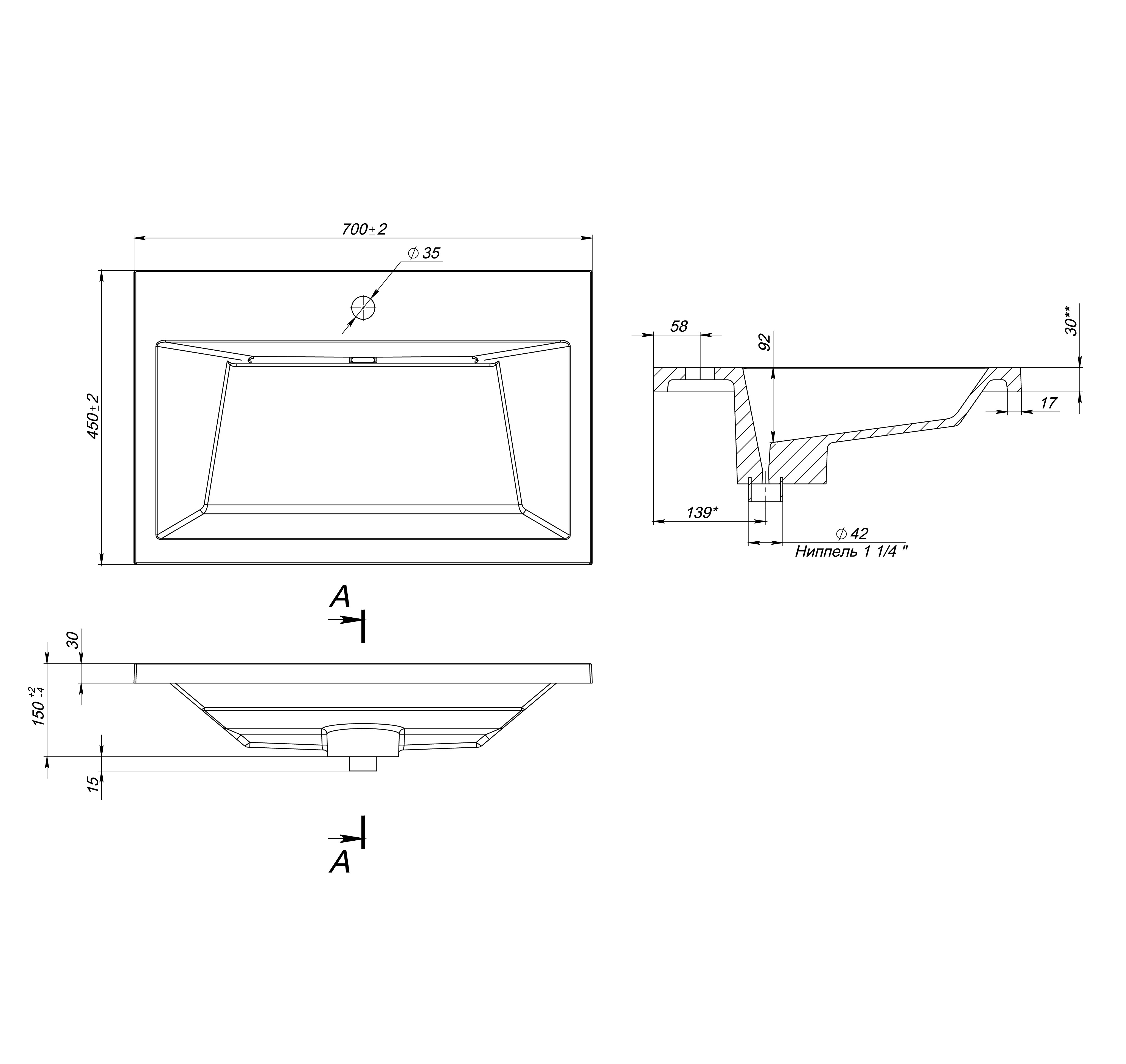 | Особенности | 1 отверстие для смесителя/ без перелива |