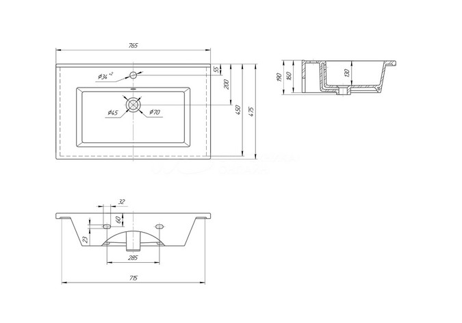 Раковина керамическая Kirovit Оскар 75 см 4640021062210