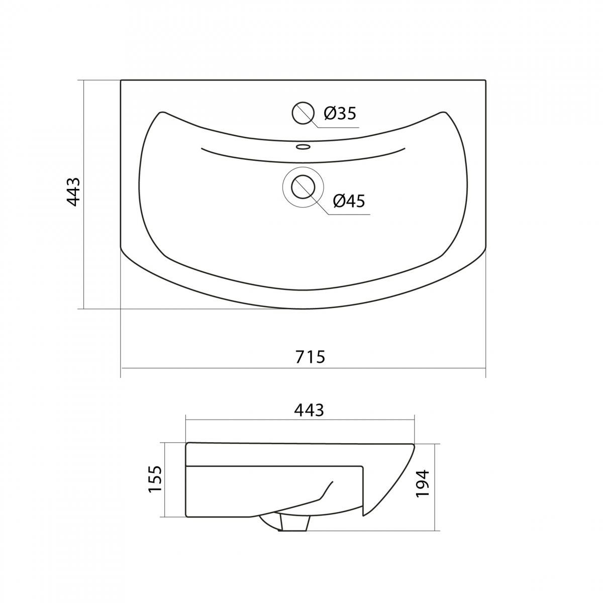 Раковина керамическая Onika Santek Балтика 70 см 1WH207776