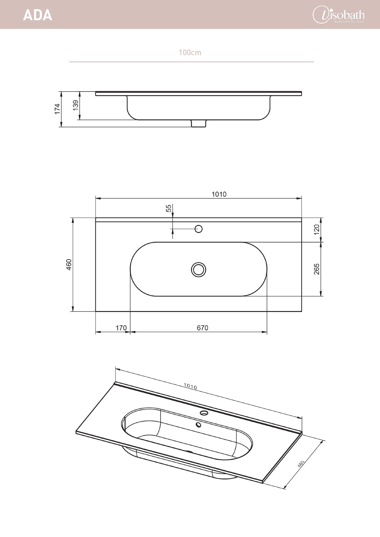 Раковина керамическая Visobath Ada 100 см белый глянцевый 83806