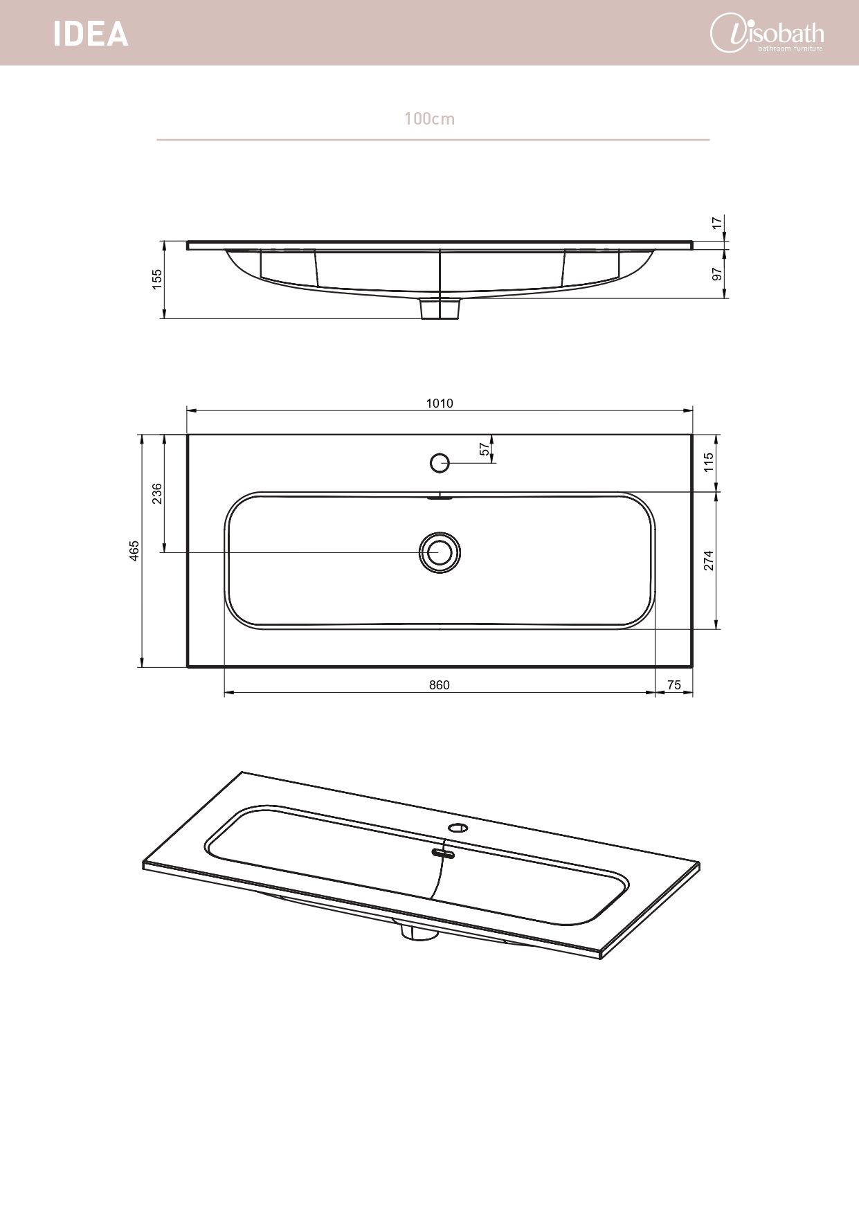 Раковина керамическая Visobath Idea 100 см белый глянцевый 76699