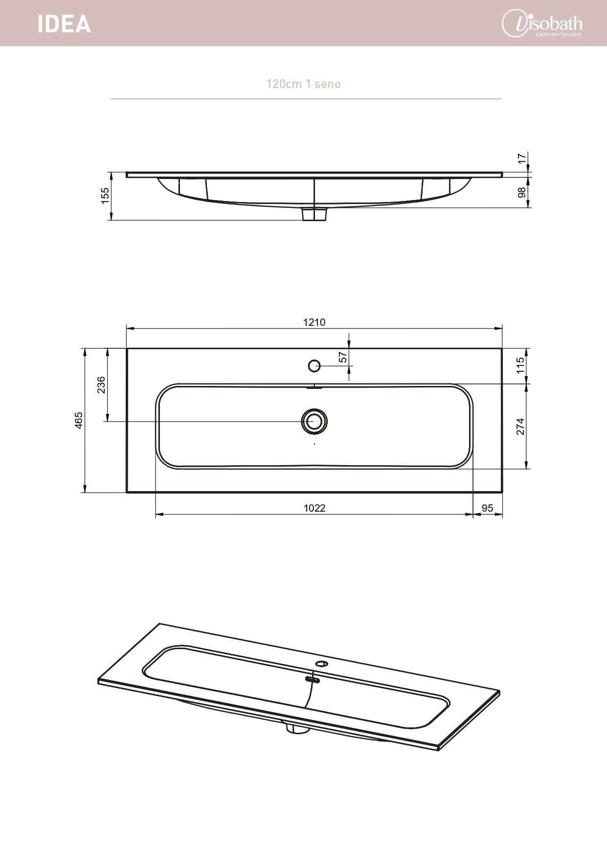 Раковина керамическая Visobath Idea 120 см белый глянцевый 76700