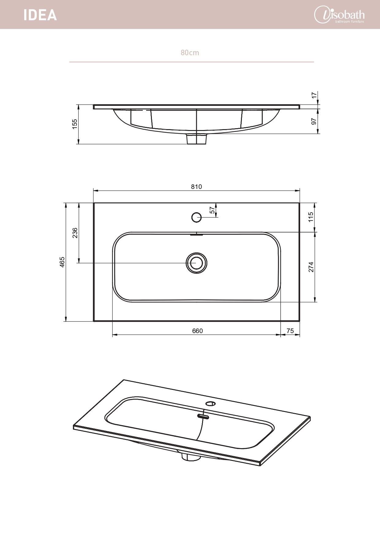 Раковина керамическая Visobath Idea 80 см белый глянцевый 76698