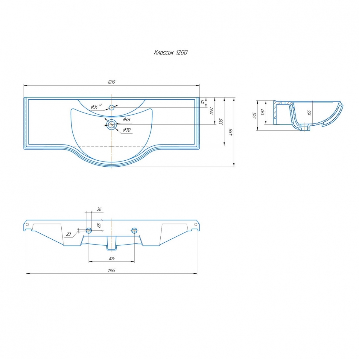 Раковина Кировит Классик 120 см для мебели Санта Classic120