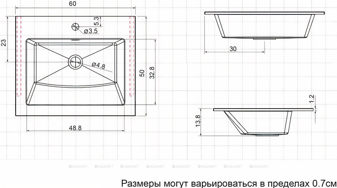 Раковина мебельная Aquanet Электра 60 см белый глянец 270160