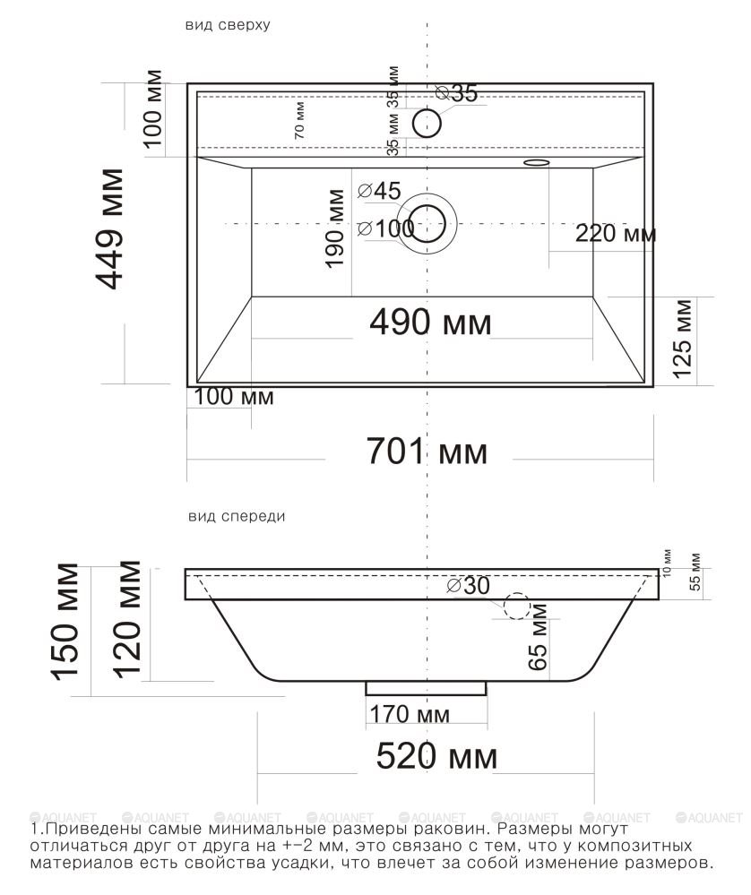 | Отверстие под смеситель | 1 |