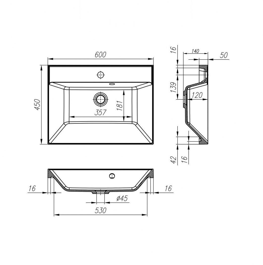 Раковина мебельная иск мрамор Art&Max 60х45 см AM-LAV-600-MR-FА