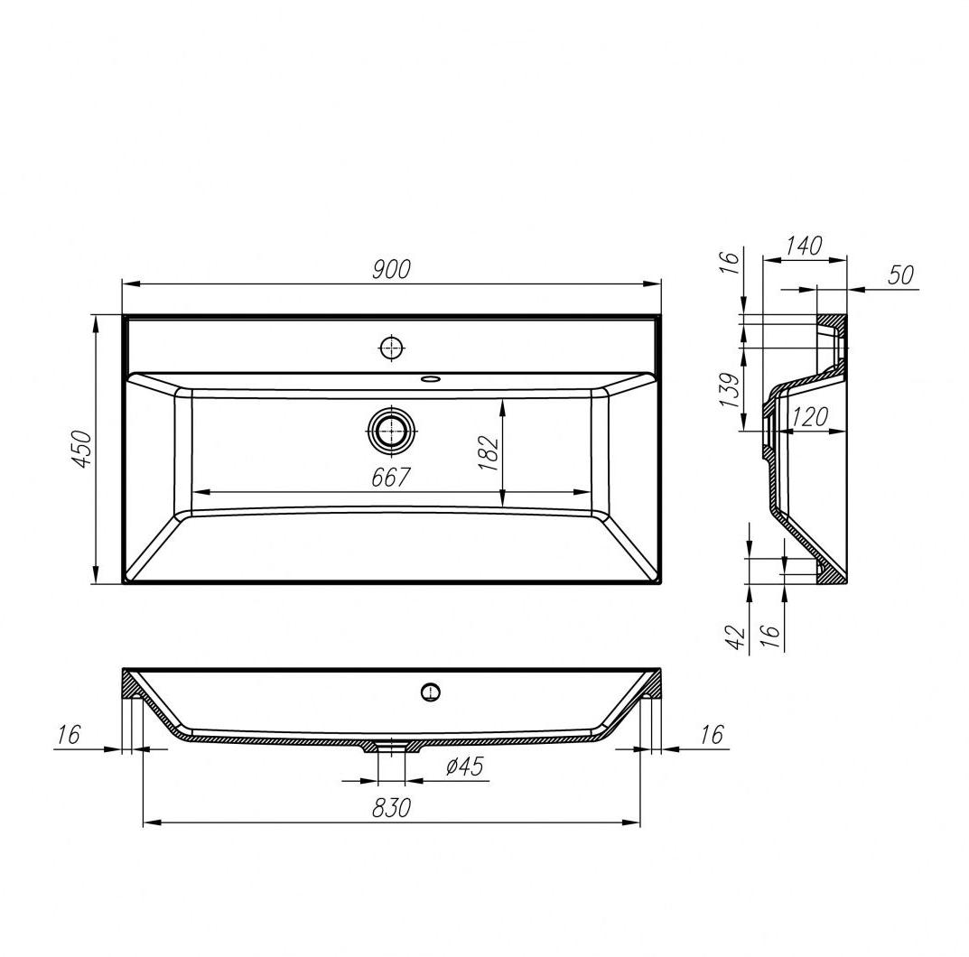 Раковина мебельная иск мрамор Art&Max 90х45 см AM-LAV-900-MR-FА