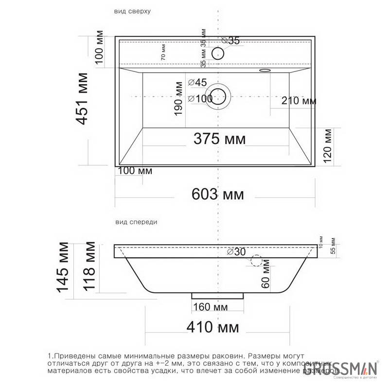 Раковина мебельная литьевой мрамор Classica 60 см 4627173210164