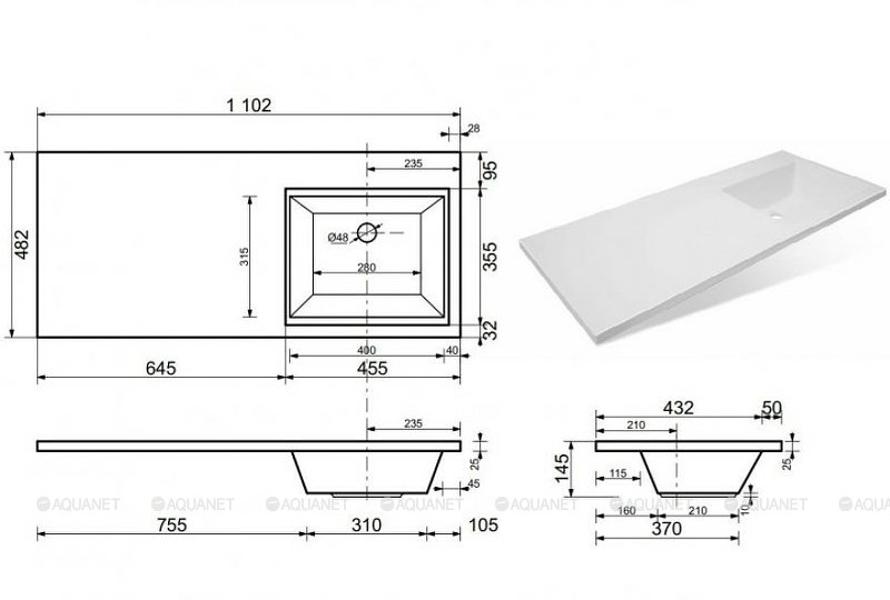 Раковина над стиральной машиной Aquanet Даллас 110х48 см L/R 235497 /235498