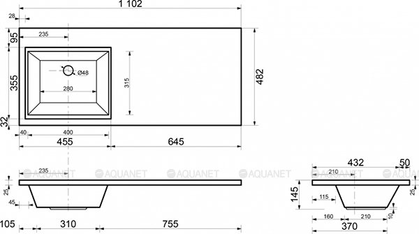 | Отверстие под смеситель | 1 слева/ справа |