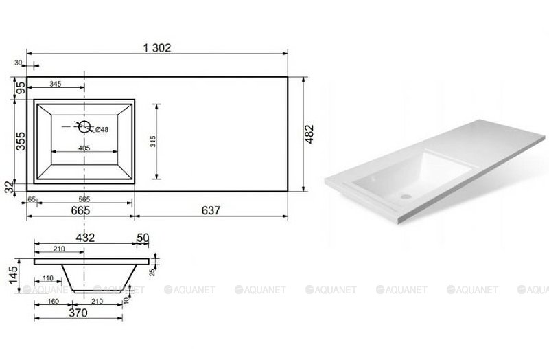 Раковина над стиральной машиной Aquanet Даллас 130х48 см L/R 235501 /235502