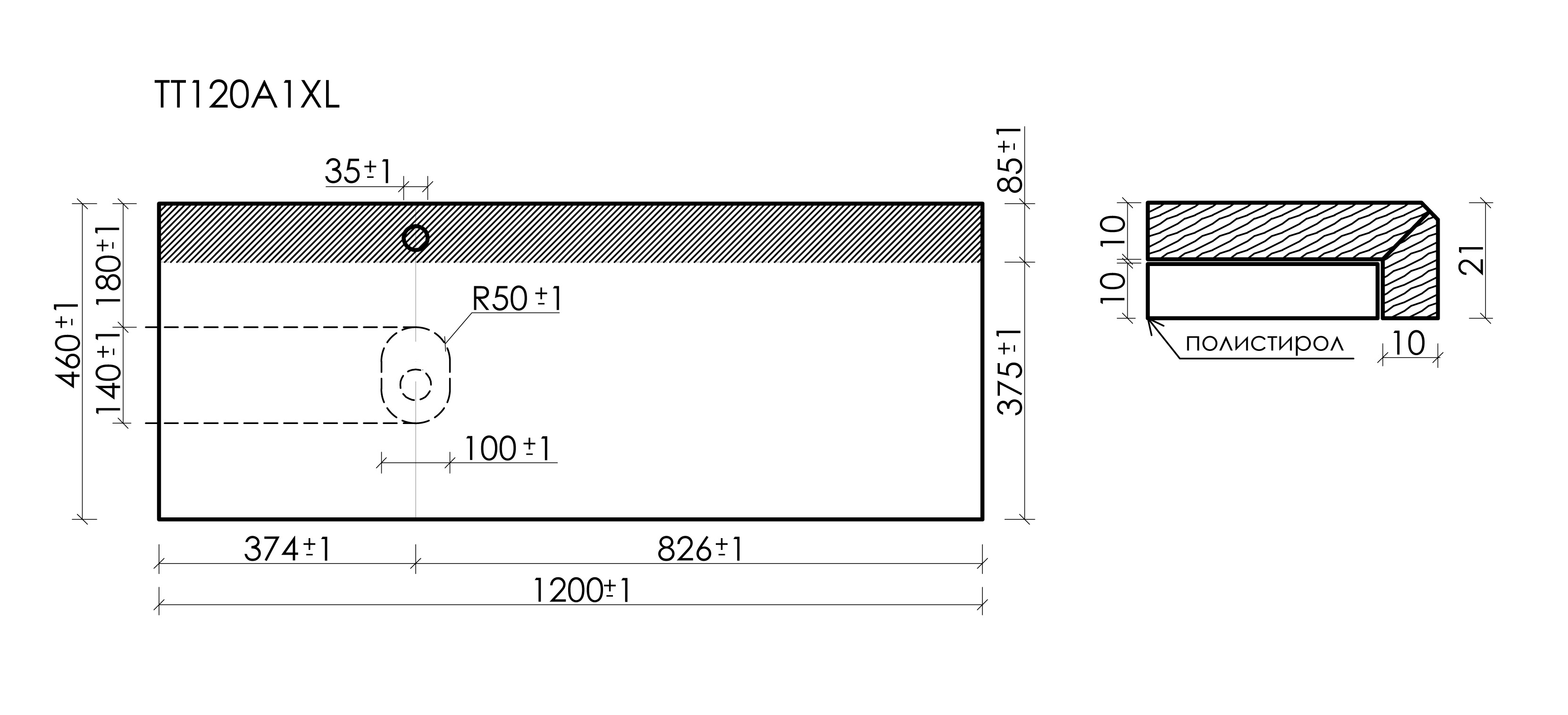 - Столешница выполнена из натурального керамогранита по двухслойной технологии.