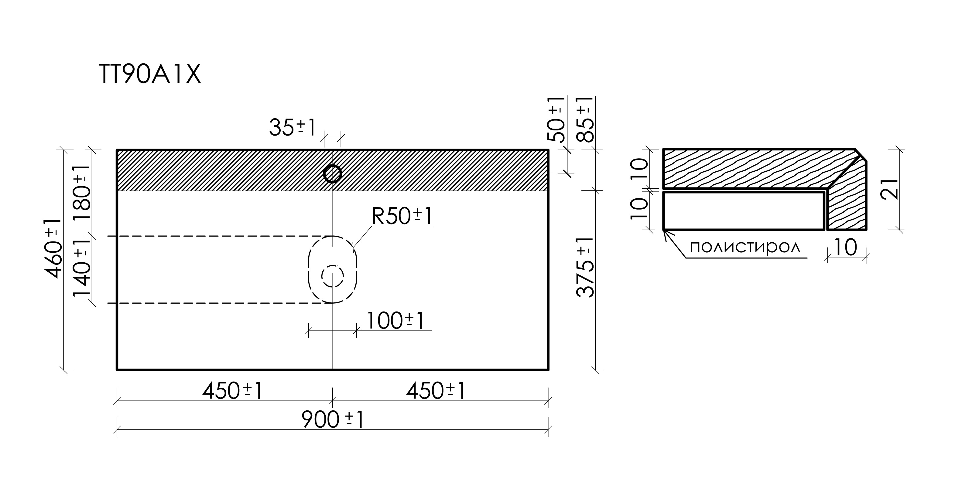 Столешница из керамогранита с отв под смеситель Sancos 90х46 см kreman TT90A2X