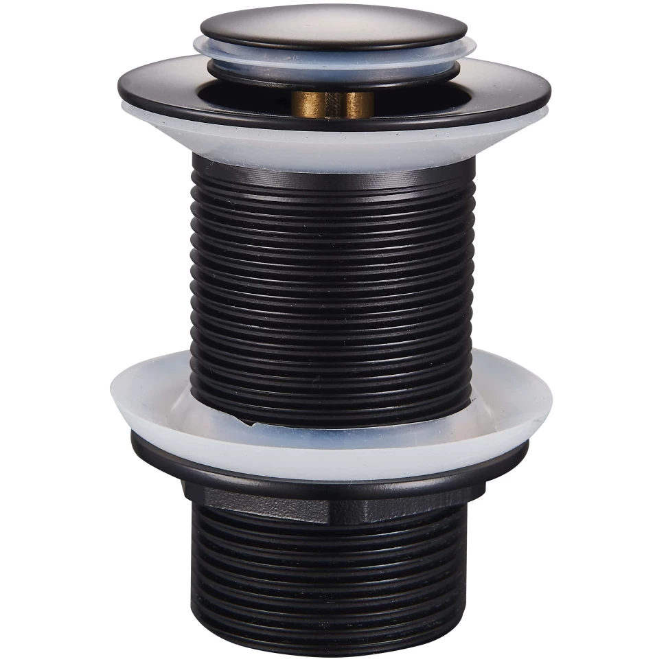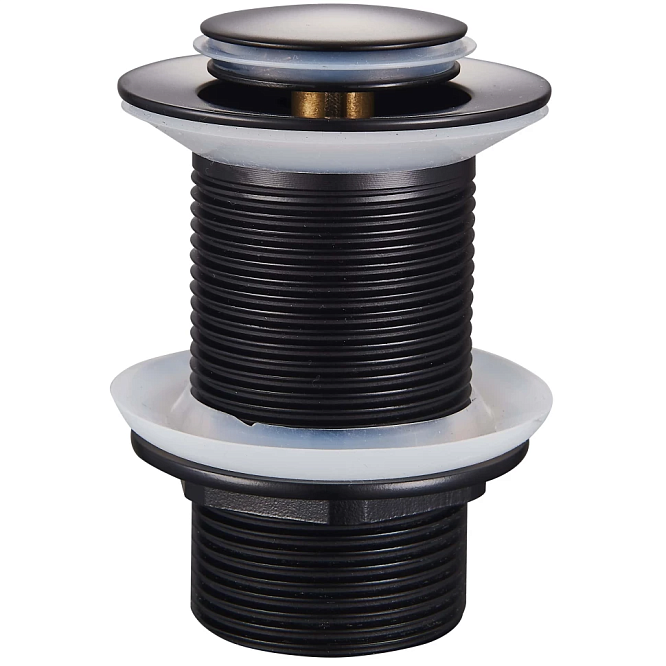 Донный клапан для раковины Raglo R600.04, без перелива, цвет черный матовый. Донный клапан плотно прилегает к сливу и мешает поступлению воды и неприятных запахов из канализации. Сделан из латуни. Клапан автоматический, чтобы перекрыть отверстие достаточно легкого нажатия на поверхность корпуса.