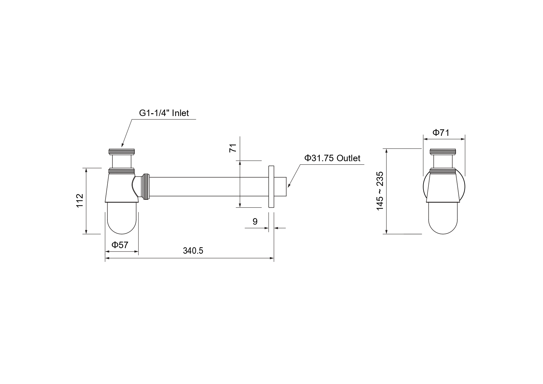 • бутылочный сифон поддерживает постоянное наличие воды в нем, со съемной частью для очистки;